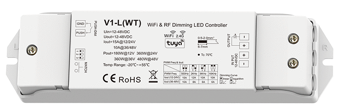 1Chanel 15A RF & Wifi (Tuya App) Controller for dimming single color LED-Strips & LED-modules 180W@12V 360W@24V 360W@36V 480W@48V