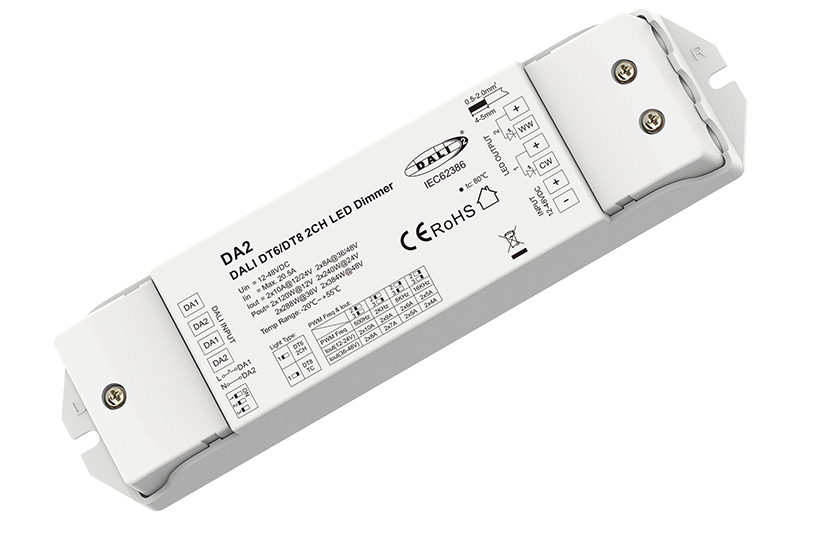 2CH*10A 12-48VDC Constant Voltage DALI Dimmer for dual color LED-strips